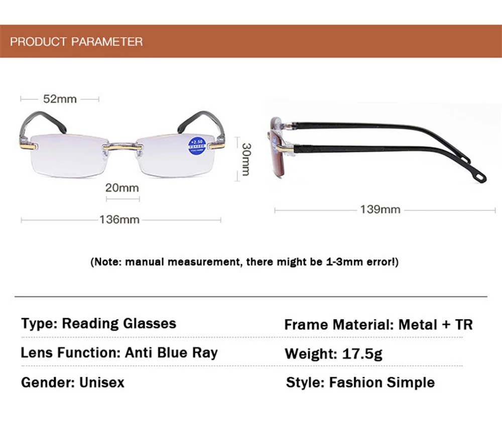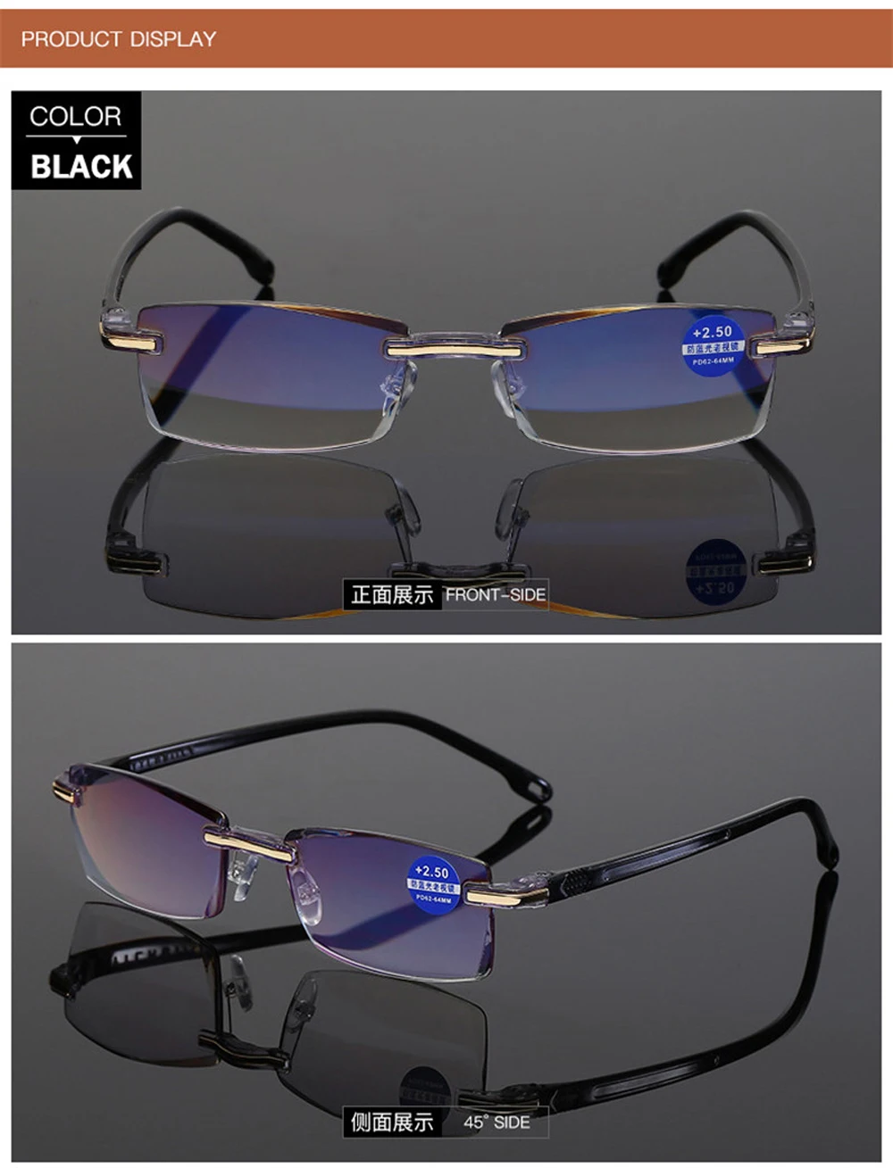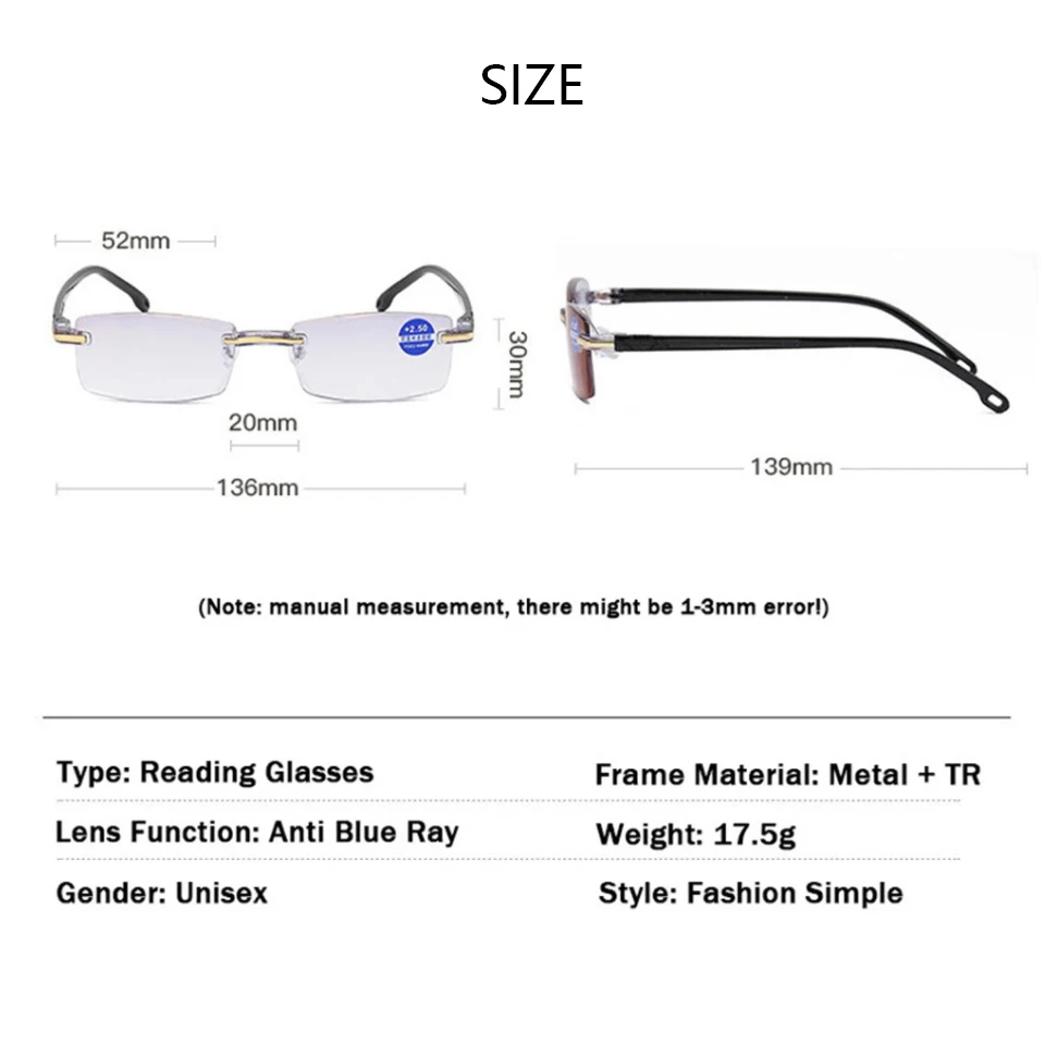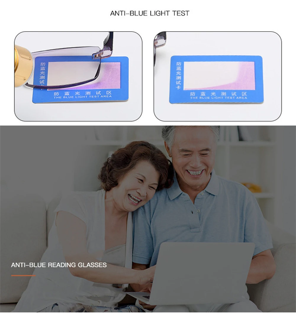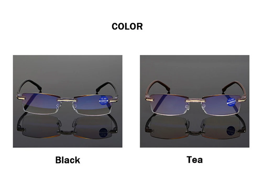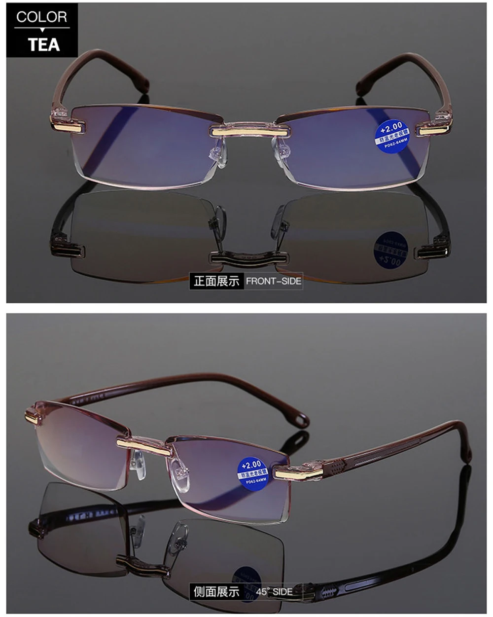 NONOR Anti Blue Rays Reading Glasses Men Presbyopia Goggles Vintage Rimless Eyewear Diopter +1.0 to 4.0